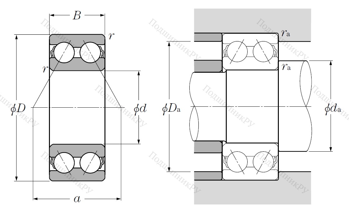 - В отличие от однорядных вариантов, может эксплуатироваться при значительно больших нагрузках радиального и осевого вектора.