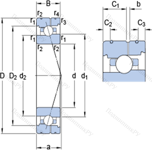 - 1 или 2 ряда тел качения, что позволяет воспринимать однонаправленные или двухсторонние осевые нагрузки;