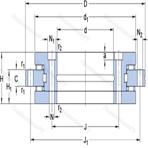 - Обладает более широкой зоной передачи усилий в сравнении с шарикоподшипниковыми аналогами, однако предназначен исключительно для работы с малыми скоростями вращения.