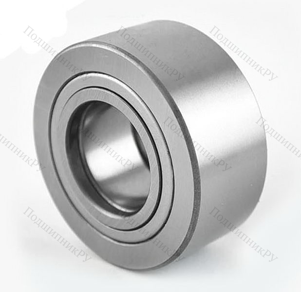Игольчатый подшипник NUTR 2052 A относится к опорным роликам усиленной разновидности, в неразъемную конструкцию которых входит уплотненная наружная шина с размещенными в ней иглороликами и стальной сепаратор, устойчивый к повреждениям. Тела качения расположены в два ряда. По бокам внутренней обоймы находятся диски, фиксирующие данное устройство, а на поверхности располагается специальное отверстие для подачи смазочного материала.