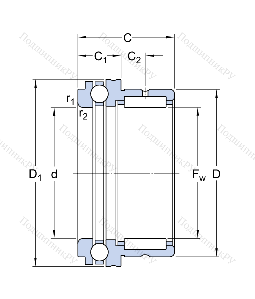 Малогабаритная конструкция Комбинированный подшипник NKX 12 представляет собой совмещение игольчатого радиального роликоподшипника и упорного подшипникового тела качения (роликового или шарикового). В качестве упорной части может идти сепаратор, в то время как иные варианты поставляются без данного элемента. Также существуют фланцевые и бесфланцевые разновидности со стандартным или удлиненным тугим кольцом.
