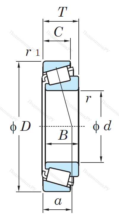 - Соотношение комбинированных нагрузок компенсируется с помощью контактного угла дорожек качения.