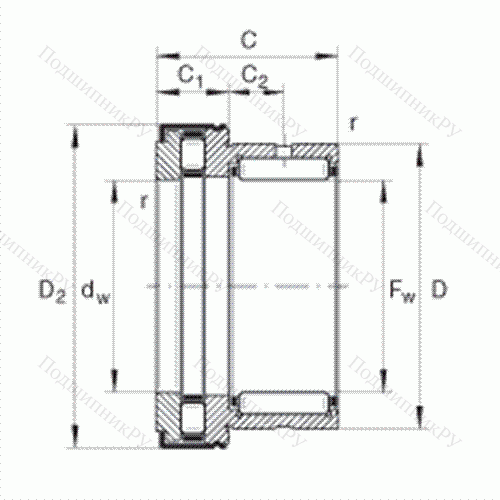 Подшипник комбинированный с короткими цилиндрическими и игольчатыми роликами NKXR 20-Z