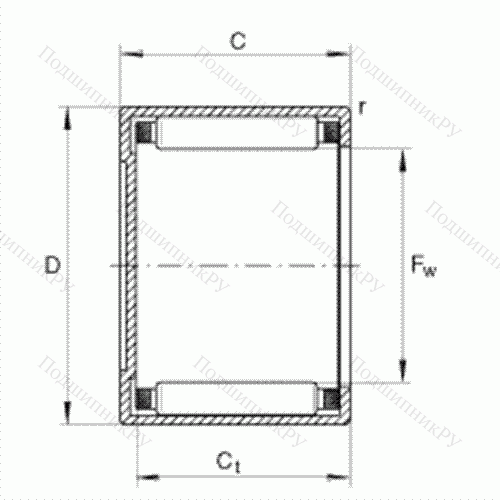 Подшипник роликовый игольчатый с одним наружным штампованным кольцом, закрытым с одной стороны BK 2212