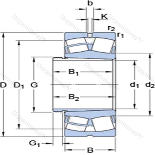 Сферические роликоподшипники на стяжной втулке 24034 CCK30/W33 + AH 24034 у которого конструкционной особенностью являются ролики в форме конуса и разъемный корпус. Изделие также может быть укомплектовано наружным кольцом с упорным бортиком или большим углом, двухрядными или четырехрядными роликоподшипниками, утолщенной внешней шиной.