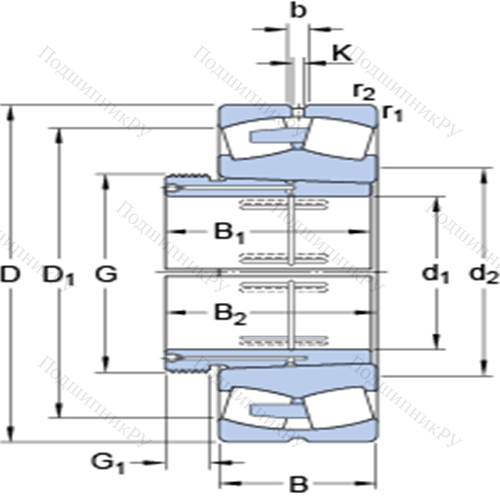 Сферические роликоподшипники на стяжной втулке 24092 ECAK30/W33 + AOH 24092 у которого конструкционной особенностью являются ролики в форме конуса и разъемный корпус. Изделие также может быть укомплектовано наружным кольцом с упорным бортиком или большим углом, двухрядными или четырехрядными роликоподшипниками, утолщенной внешней шиной.