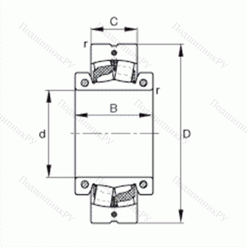 - 22222K / Условное обозначение, двухрядный радиальный сферический роликоподшипник, неразъемный