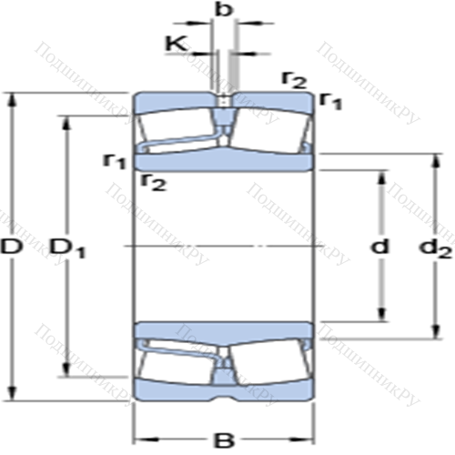 Сферические роликоподшипники с цилиндрическими и коническими отверстиями 22322 EJA/VA405 предназначен, главным образом, для эксплуатации в условиях аксиальных воздействий. Существуют варианты в однорядном и двухрядном исполнении. В первом случае неразъемная конструкция закрепляется при помощи втулок и включает бочкообразные роликоподшипники, сепаратор, толстостенную внешнюю обойму сферической формы и внутреннее широкое кольцо с бортиками, в котором иногда располагается посадочное гнездо под цилиндрическую или коническую посадочную основу. Второй тип имеет двухрядный набор тел качения и способен к восприятию как аксиальных, так и осевых нагрузок.