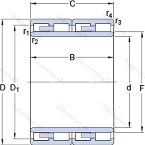 Четырёхрядные цилиндрические роликоподшипники 313893