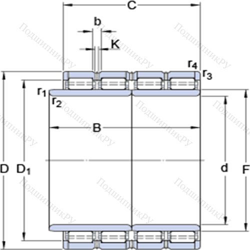 Четырёхрядные цилиндрические роликоподшипники 315606