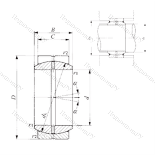 Подшипник скольжения сферический GE 60ES конструкция которого представлена внешним кольцом, внутри вращается внутренняя обойма. Существуют прямые, шарнирные (самовыравнивающиеся), угловые, гидравлические, двойные шарикоподшипниковые и роликоподшипниковые варианты исполнения. Отдельные разновидности изделий (с парой трения «сталь – сталь») нуждаются в обслуживании и имеют каналы для подачи смазки, в то время как другие не нуждаются в ТО. В первом случает система включает в себя пару стальных шин, обработанную предварительно фосфатами и дисульфитом молибдена. Необслуживаемые модели покрываются политетрафторэтиленом, армируются медью и дополнительно усиливаются хромом.