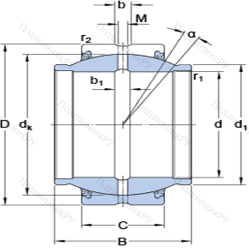 Радиальные сферические подшипники скольжения с контактными поверхностями сталь/сталь, требующие техобслуживания GEM 40 ES-2RS