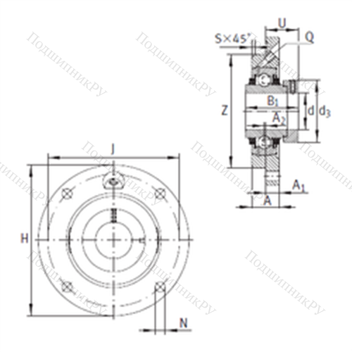 Подшипниковый узел шариковый радиальный TME 75