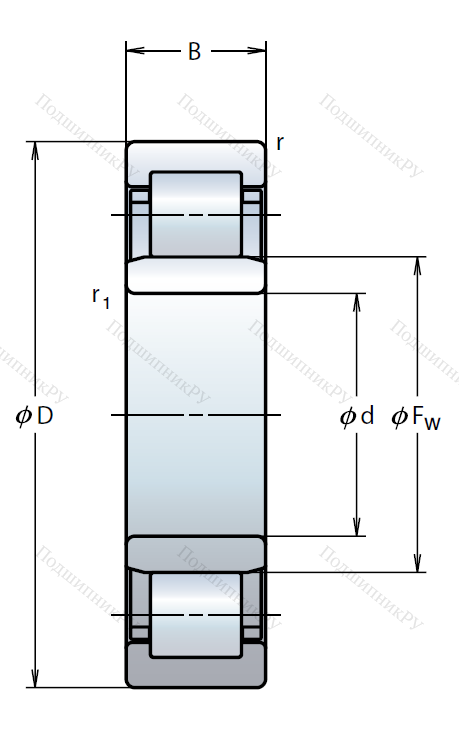 Роликовый цилиндрический подшипник NU 314 W, это разновидность однорядного роликоподшипника в метрическом исполнении.