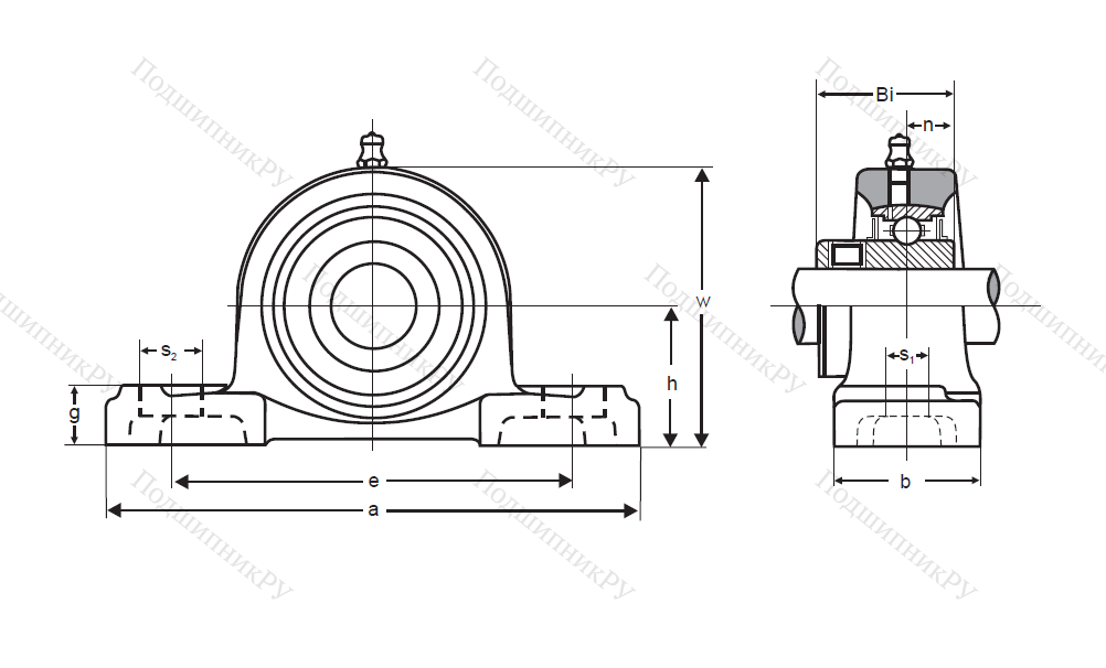 В конструкцию входит корпус Р-серии и шарикоподшипник разновидности UK, оснащенный желобом и парой уплотнений, крепящихся к валу с помощью специальной закрепительной втулки, поставляющейся отдельно.