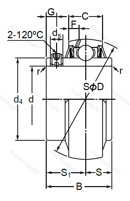 Шариковое радиальное тело, имеющее сферической формы внешнюю шину и комплектующееся специальными пыльниками для защиты. Конструкция неразъемная с шириной или высотой подшипника B(H): 96мм, с уплотнениями и расширенной внутренней обоймой, которая может быть зафиксирована при помощи двух винтов или самозапирающего механизма.