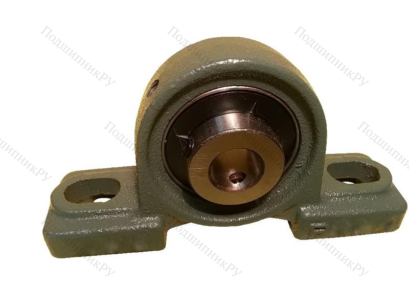 В конструкцию детали входит корпусный подшипник типа UC, установленный в корпус типа Р из чугуна с нишей сферической формы. Монтаж на вал осуществляется посредству кольца, оснащенного парой штифтов, закручиваемых шестигранником, что обеспечивает самовыравнивание.