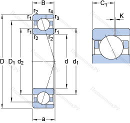 | Расчётный коэффициент (подшипники с расположением по О-образной и X-образной схемам) | X2 | 0.67 |